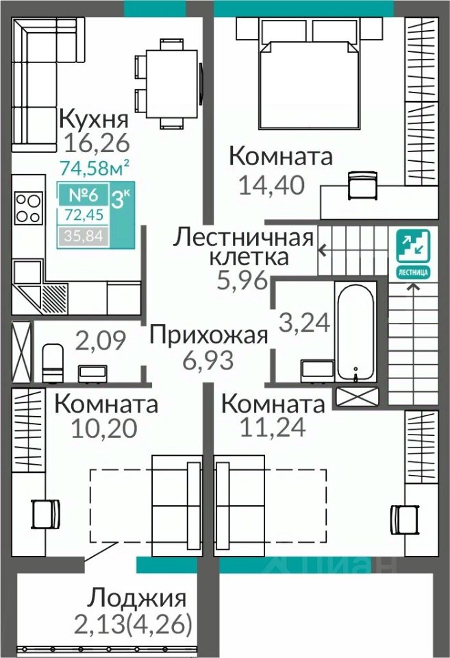 Продаётся 2-комнатная квартира в строящемся доме (Этап 1), срок сдачи: I-кв. 2028, общей площадью 58 кв.м., на 7 этаже. Новый жилой комплекс от ГК ''Монолит'' по адресу: Республика Крым, Симферополь, улица Святителя Гурия