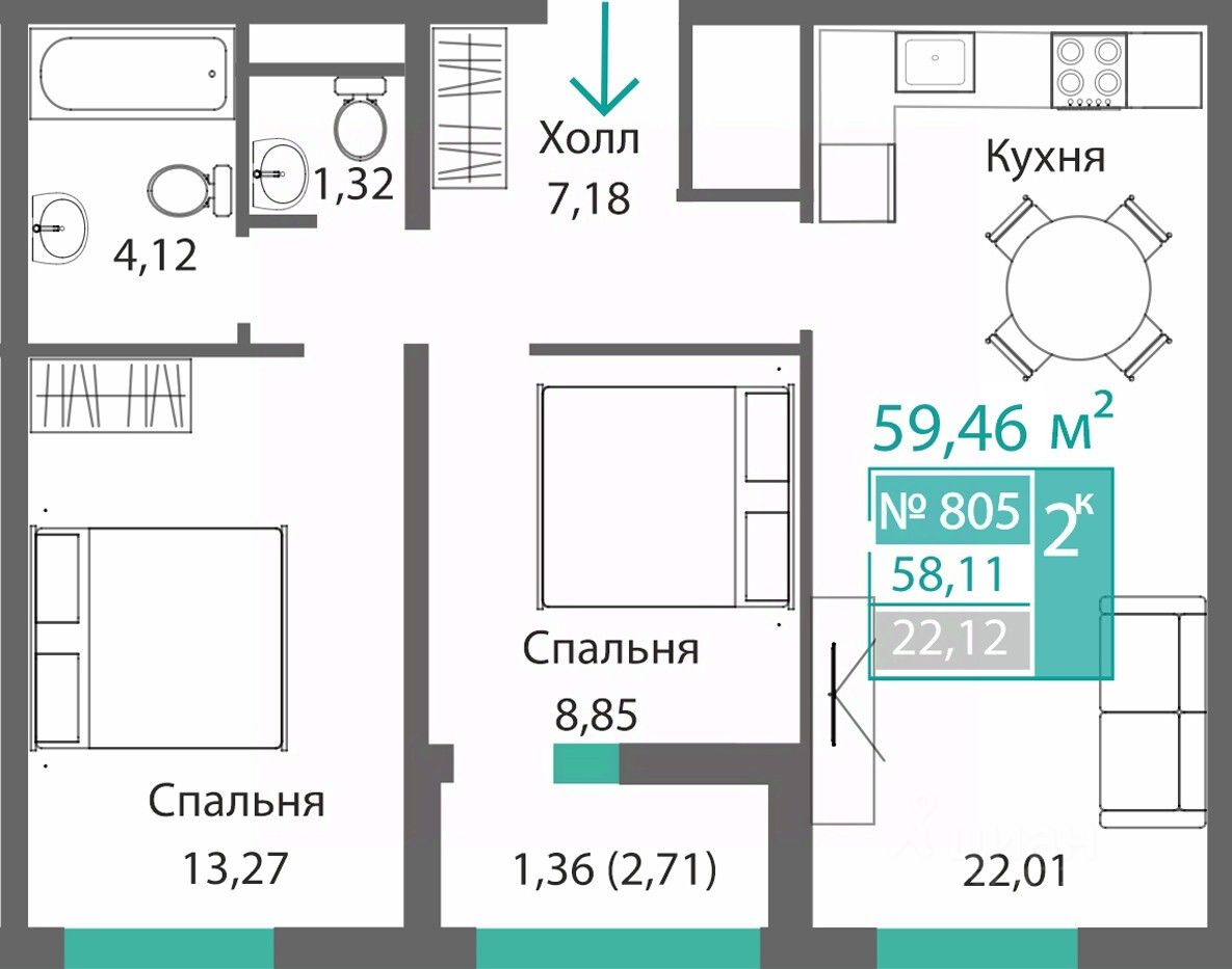 Продаётся 2-комнатная квартира в строящемся доме (Этап 1), срок сдачи: I-кв. 2028, общей площадью 58.11 кв.м., на 8 этаже. Новый жилой комплекс от ГК ''Монолит'' по адресу: Республика Крым, Симферополь, улица Святителя Гурия