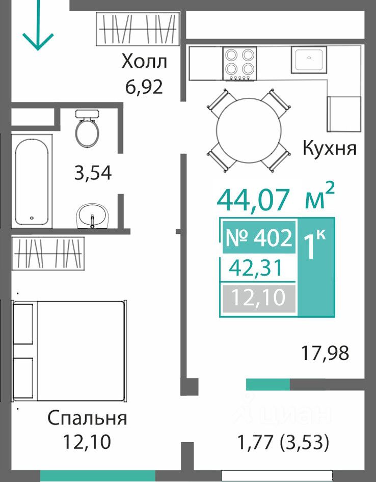 Продаётся 1-комнатная квартира в строящемся доме (Этап 1), срок сдачи: I-кв. 2028, общей площадью 42.31 кв.м., на 4 этаже. Новый жилой комплекс от ГК ''Монолит'' по адресу: Республика Крым, Симферополь, улица Святителя Гурия