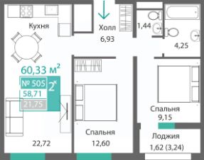 62 м² · Этаж 3 из 9