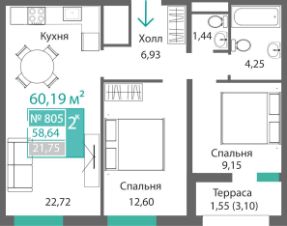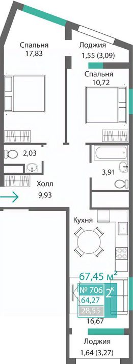 Продаётся 2-комнатная квартира в строящемся доме (Этап 4 (Секции А2, Ж2, Г4, В2, Г3)), срок сдачи: II-кв. 2028, общей площадью 64.27 кв.м., на 7 этаже. Новый жилой комплекс ''Подсолнух'' от застройщика ''Монолит'' расположен по адресу: Республика Крым, г. Симферополь, ул. Святителя Гурия