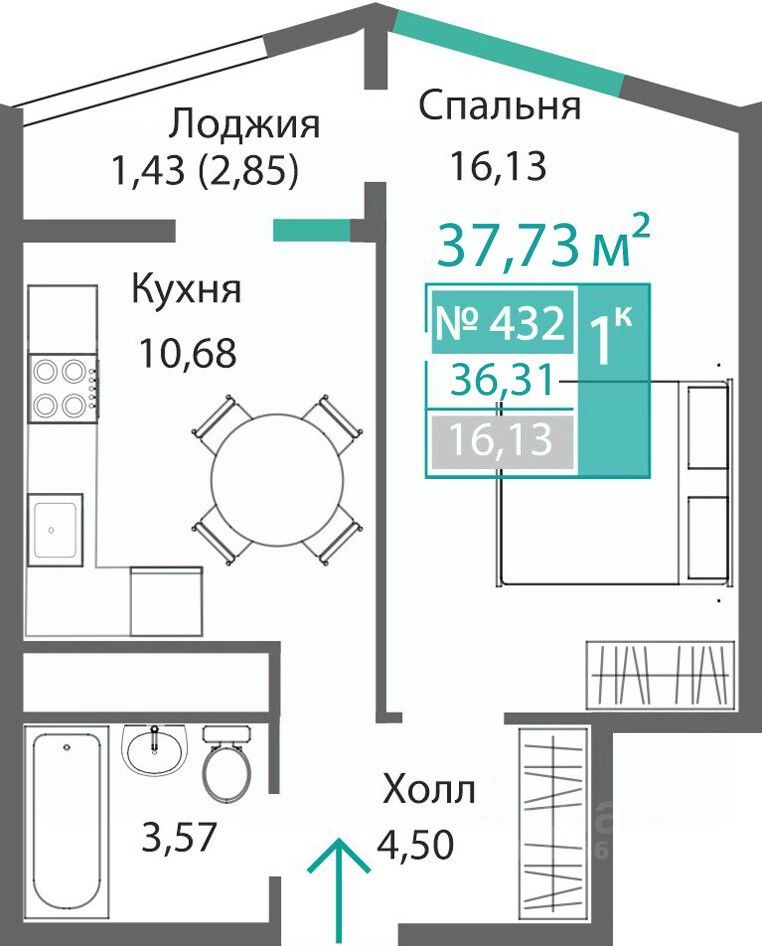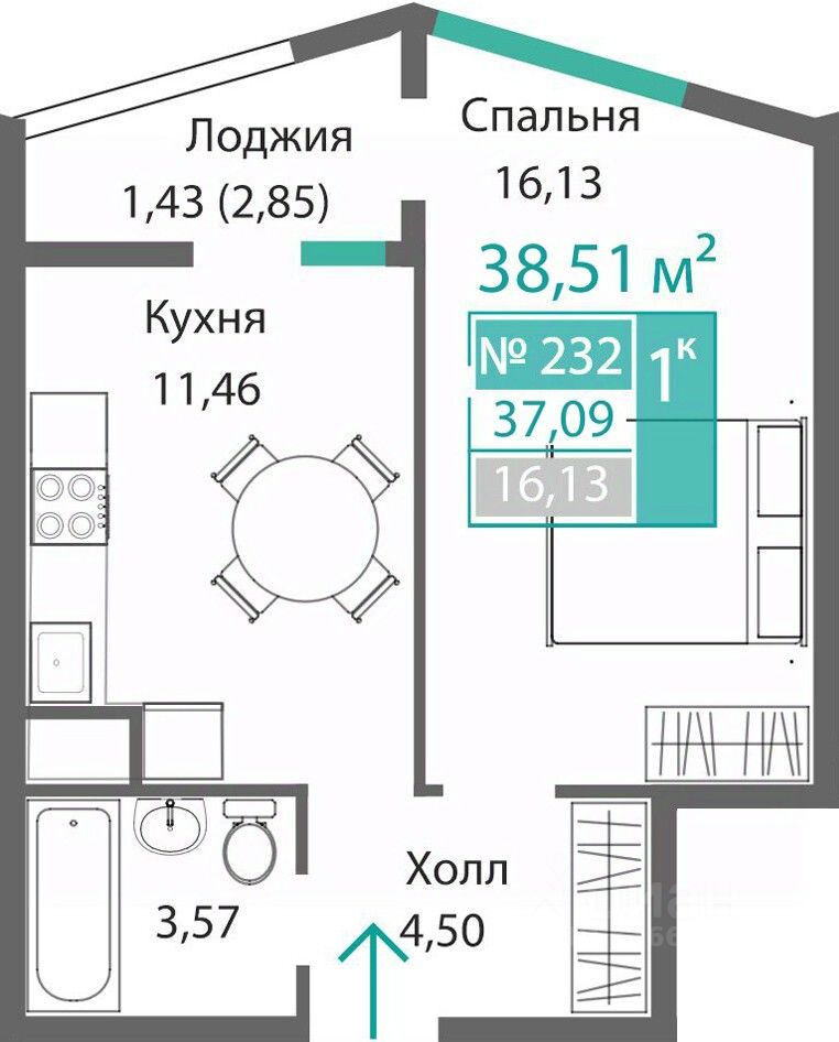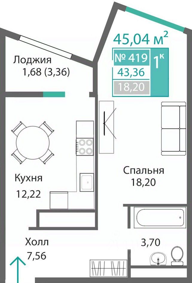 43 м² · Этаж 4 из 9