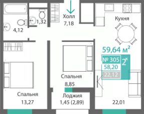 Продаётся 2-комнатная квартира в строящемся доме (Этап 4 (Секции А2, Ж2, Г4, В2, Г3)), срок сдачи: II-кв. 2028, общей площадью 58.71 кв.м., на 3 этаже. Новый жилой комплекс ''Подсолнух'' от застройщика ''Монолит'' расположен по адресу: Республика Крым, г. Симферополь, ул. Святителя Гурия