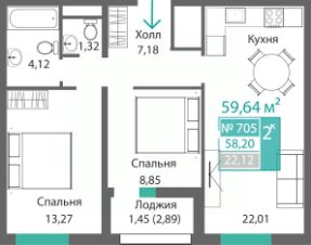 Продаётся 2-комнатная квартира в строящемся доме (Этап 4 (Секции А2, Ж2, Г4, В2, Г3)), срок сдачи: II-кв. 2028, общей площадью 58.71 кв.м., на 7 этаже. Новый жилой комплекс ''Подсолнух'' от застройщика ''Монолит'' расположен по адресу: Республика Крым, г. Симферополь, ул. Святителя Гурия