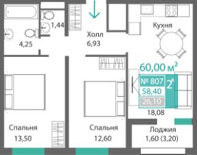 Продаётся 2-комнатная квартира в строящемся доме (Этап 4 (Секции А2, Ж2, Г4, В2, Г3)), срок сдачи: II-кв. 2028, общей площадью 58.48 кв.м., на 4 этаже. Новый жилой комплекс ''Подсолнух'' от застройщика ''Монолит'' расположен по адресу: Республика Крым, г. Симферополь, ул. Святителя Гурия