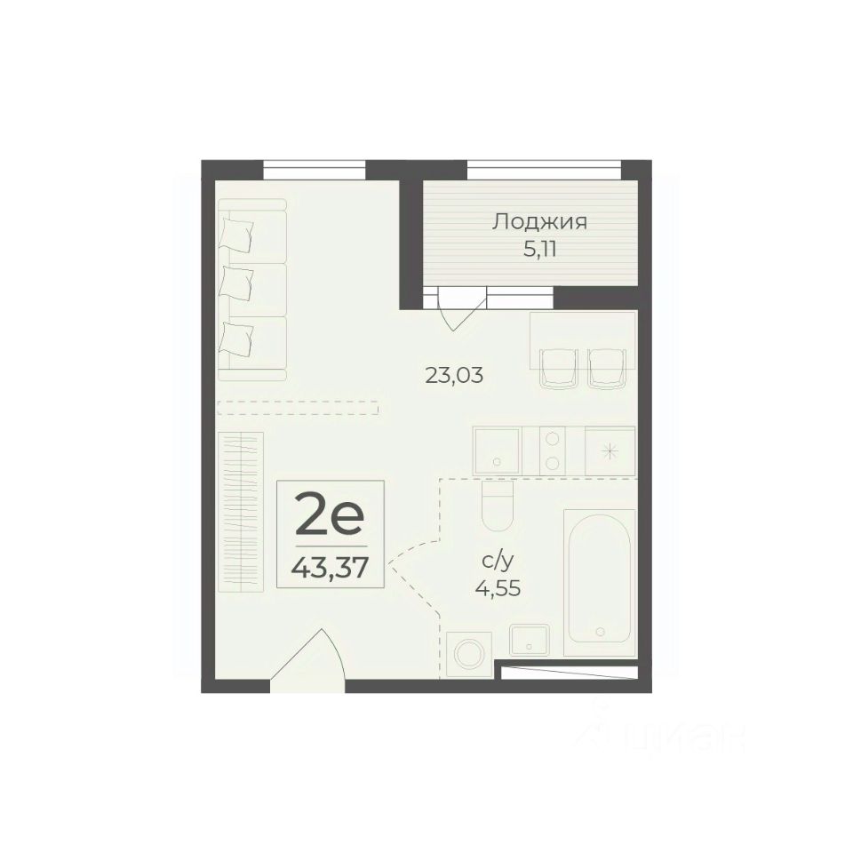 43 м² · Этаж 5 из 15