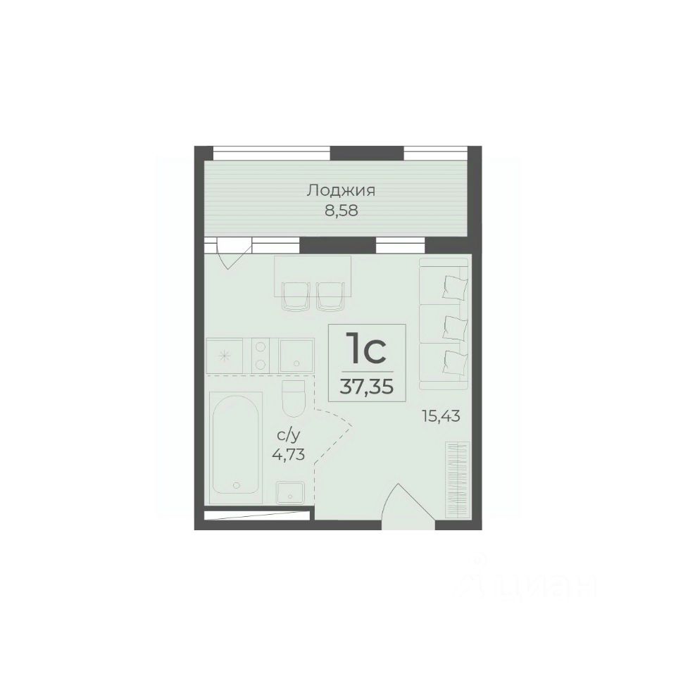 43 м² · Этаж 4 из 15