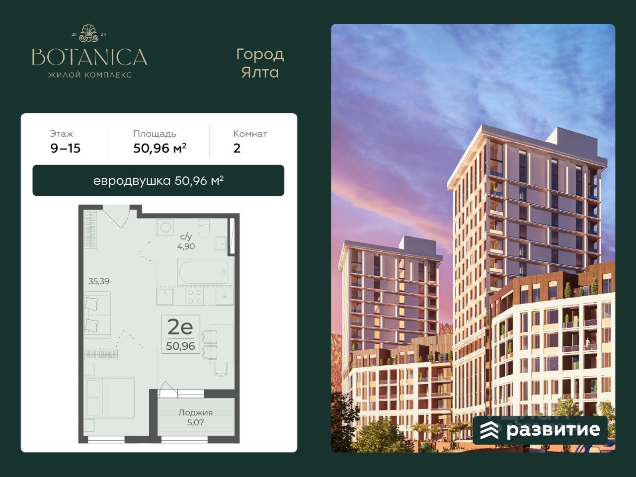 Продаётся 2-комнатная квартира в строящемся доме (Корпус 1 (секция 1, 2)), срок сдачи: I-кв. 2029, общей площадью 54.4 кв.м., на 3 этаже. Новый жилой комплекс ''Botanica'' от застройщика ''Развитие'' расположен по адресу Россия, Республика Крым, городской округ Ялта, посёлок городского типа Массандра, Южнобережное шоссе