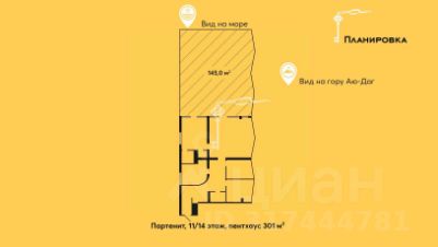 Продается эксклюзивный пентхаус с панорамным видом на море и гору Аю-Даг в Партените. Просторные апартаменты площадью 301 м² расположены на 11 этаже 14-этажного современного дома — идеальное сочетание уединения, комфорта и природы.Особенности объекта: Отделка white box — возможность реализовать интерьер по индивидуальному проекту,Огромная терраса с прямым видом на море и Аю-Даг — идеально для обустройства зоны отдыха, загара или барбекю,Панорамные окна по всему периметру — невероятные виды в любое время суток,По документам — апартаменты. Инфраструктура: Закрытая территория,Детская площадка, Рядом магазины, аптеки, кафе,Всего 2 минуты до моря — пляж в шаговой доступности. -До Ялты 25 километров или 15-20 минут на машине, -До Алушты - 15 километров или 10-15 минут на машине. Партенит — уютный курортный поселок на Южном берегу Крыма у подножия Аю-Дага, между Ялтой и Алуштой. Здесь чистое море, горный воздух и пешеходные тропы для прогулок. В Партените чистые галечные пляжи с прозрачным морем. Самые популярные — Центральный и пляж санатория ''Крым'', ухоженные и с удобным входом в воду. Есть и тихий песчаный пляж у отеля ''Европа'', а также дикие уединённые бухты.Расстояние до других объектов инфраструктуры детского сада, школы и поликлиники, составляет менее двух километров.Здесь же в шаговой доступности раскинулся парк Айвазовского, Карасанский парк и дворец княгини Гагариной.Если вы мечтаете жить и отдыхать на самом берегу моря в любое время года, то этот вариант для вас. Звоните, на связи 24/7!