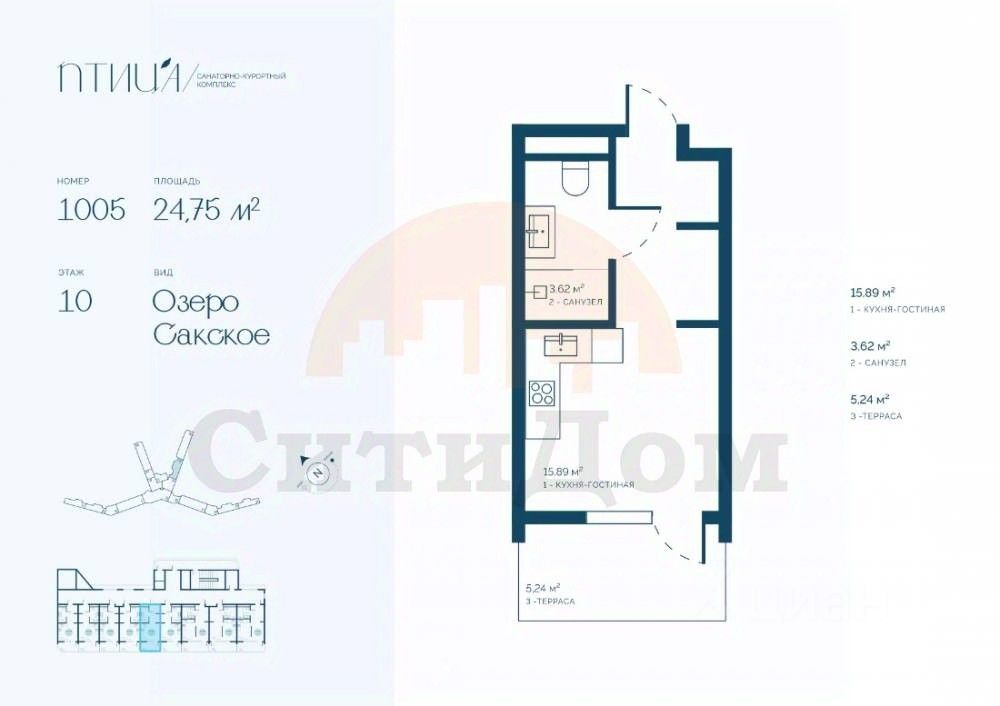 В новом санаторно-курортном комплексе премиум-класса на первой береговой линии ''ПТИЦА'' продаются отличные апартаменты с боковым видом на море! Состоят из кухни-гостиной 15,89 м2, совмещенного санузла 3,62 м2 и террасы 5,24 м2. Общая площадь 24,75 м2. СРОК СДАЧИ ДОМА 3 квартал 2028 г. Санаторно-курортный комплекс ПТИЦА — это уникальный комплекс, включающий в себя номерной фонд и собственный санаторный корпус, соединяющий в себе проживание, оздоровление и отдых сервиса 5*. В непосредственной близости к Чёрному морю, ПТИЦА ставит новый акцент, создавая мощный центр притяжения в экологичной локации бальнеологического курорта САКИ. ПТИЦА — это новый взгляд на комфортную среду, в центре которой находится человек, его физическое и ментальное здоровье. Архитектурное решение, в виде здания переменной этажности в форме белой птицы, устремившейся в море, с террасами и эксплуатируемой кровлей производит целостное впечатление, где концепция зданий отражает собственные индивидуальные черты. Это верность традициям, сервис мирового стандарта, и южное гостеприимство. Птица объединяет в себе отдых уровня 5 звезд и оздоровление с применением первоклассной медицины. Индивидуальный подход к каждому гостю и новейшие технологии. ПТИЦА в деталях: - 11 ГА БЛАГОУСТРОЕННОЙ ТЕРРИТОРИИ - 3 ГА ЗАКРЫТОГО ПЛЯЖА - ПЛОЩАДЬ НОМЕРНОГО ФОНДА ОТ 24,16 М2 ДО 345,26 М2 - САНАТОРНЫЙ КОРПУС С МЕДИЦИНСКИМ ОБСЛУЖИВАНИЕМ - SPA-ЦЕНТР 1 960 М2 И БАССЕЙН С МОРСКОЙ ВОДОЙ 700 М2 - ОТКРЫТЫЙ КИНОТЕАТР - КОВОРКИНГ И КОНФЕРЕНЦ ЗАЛ - ДЕТСКИЕ И ВЗРОСЛЫЕ СПОРТИВНЫЕ ПРОСТРАНСТВА - ПАНОРАМНЫЙ РЕСТОРАН НА 16 ЭТАЖЕ Купить апартаменты в ''ПТИЦЕ'' — это идеальное инвестиционное вложение на старте продаж и возможность получать пассивный доход после сдачи комплекса. Международный отельный оператор обеспечит стабильный круглогодичный доход с окупаемостью апартаментов за 5-6 лет. Удивительное сочетание всех удобств в одном месте. АПАРТАМЕНТЫ ПО ЦЕНЕ ЗАСТРОЙЩИКА! БЕЗ ДОПОЛНИТЕЛЬНЫХ КОМИССИЙ ОТ ПОКУПАТЕЛЯ! В продаже имеются другие апартаменты с другими планировками на Ваш выбор! Отличный вариант для инвестиций! Звоните! При звонке сообщите, пожалуйста, номер объекта 2035, чтобы мы могли предоставить вам интересующую информацию оперативно.