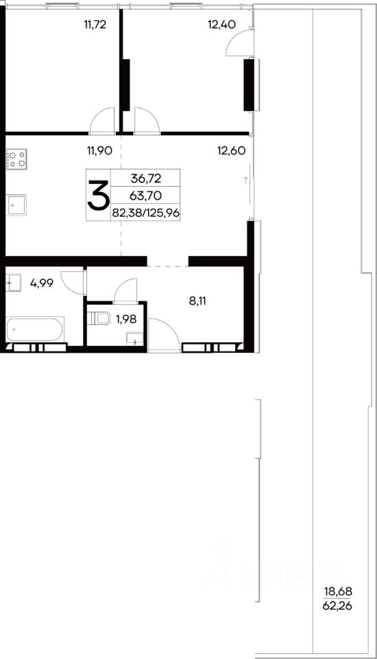 Продаётся 3-комнатная квартира в строящемся доме (БС-3), срок сдачи: III-кв. 2027, общей площадью 125.96 кв.м., на 15 этаже. Наш комплекс - это рай для детей. Мы предусмотрели активности для детей разных возрастов. Курорт ''Лучистое'' - это место, где максимально комфортно и не принуждённо будет развиваться творческая личность Вашего малыша! Пока дети развлекаются, взрослые могут спокойно насладиться атмосферой. К Вашим услугам аква- зоны и банный комплекс. Ресторанный сектор обслужит Вас в любом удобном для Вас месте: у бассейна, дома, во дворе в тени крымских сосен или на смотровой площадке. Оборудованные беседки- барбекю располагают к душевному вечернему времяпровождению с крымским авторским вином. Все элементы нашего комплекса способствуют оздоровлению Вас и Вашей семьи. Просто гуляя по хвойному парку, вы погружаетесь в климатолечение. Совершая пробежки по горным терренкурам, не принуждённо привыкаете к увеличению физических нагрузок. А если дождливая погода, позаниматься фитнесом можно в спортзале. Ну а наш йога-центр с видом на крымские горы - это ''изюминка'' нашего комплекса.