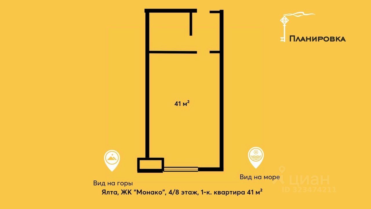 Продажа квартиры с видом на море в новом современном комплексе бизнес-класса Monaco, расположенном в поселке Восход, вблизи Ялты. Уникальное предложение по специальной цене! Общая площадь квартиры 41 м². Расположена на четвертом этаже 8-этажного дома. Планировочное решение: -кухня-столовая,-светлая спальня с видом на море,-прихожая.Состояние - под отделку. Свободная планировка. По документам статус - квартира. О жилом комплексе бизнес-класса Монако -Создан в лучших традициях средиземноморской архитектуры, призванной сохранять тонкий баланс между конструкцией здания и природой,-Дом на 143 квартиры с видом на Черное море и Ялтинское побережье, окруженный крымскими соснами и горами,-Расположен в экологически чистом районе города, между Никитским ботаническим садом и Массандровским парком,-Уникальная локация комплекса обеспечивает не только тишину и уединение, но и возможность быстро добраться до моря, достопримечательностей и городской инфраструктуры,Инфраструктура: -крытый бассейн и сауна,-reception,-подземный паркинг,-кладовые,-тренажерный зал,-детские площадки,-закрытая охраняемая территория,До моря и оборудованных пляжей менее 10 минут на автомобиле, До центра Ялты 6,6 км, 13 минут на авто. Отличный вариант выгодного вложения в собственное жилье или вариант под сдачу. Звоните нам, и мы ответим на все ваши вопросы! Мы на связи 24/7. Выбирая Breeze House, вы получаете полный комплекс профессиональных услуг по покупке премиальной недвижимости.