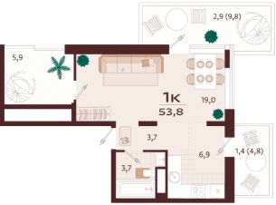 Продаётся 1-комнатная квартира в строящемся доме (Корпус 3), срок сдачи: II-кв. 2027, общей площадью 53.8 кв.м., на 8 этаже. Жилой комплекс бизнес-класса ''РОЯЛТА'' от застройщика ''ГК ТОЧНО'' в городе Ялта Республики Крым на улице Спендиарова.