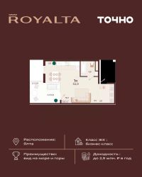 Жилой комплекс ''РОЯЛТА'' включает 5 монолитно-кирпичных девятиэтажных зданий. Проект предлагает квартиры различных планировок: от однокомнатных до трехкомнатных с расширенными балконами и террасами до 13,4 м2. Территория будет благоустроена детскими игровыми и спортивными площадками, гостевой автостоянкой и озеленением, включая газоны, деревья и кустарники. Также появятся современные уличные тренажёры, СПА-комплекс и панорамный инфинити-бассейн. В шаговой доступности находятся центральная набережная Ялты, детские сады, школы, супермаркеты, торговые центры, Ялтинский медицинский колледж, автовокзал и Мордвиновский парк.