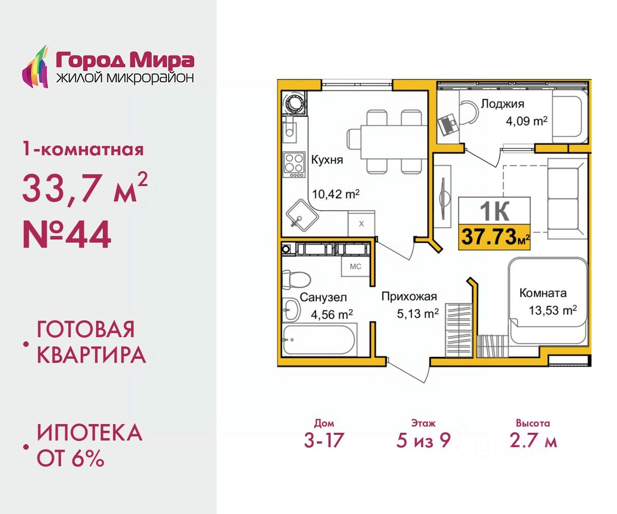 Готовые квартиры. Ипотека от 6%. Информация по телефону, наши менеджеры вам все расскажут. 1-комн. квартира с предчистовой отделкой в ЖМ ''Город Мира'' на 5 этаже. Общая площадь: 33.7 кв.м., жилая: 13.53 кв.м., площадь просторной кухни-столовой: 10.42 кв.м. Все окна выходят на одну сторону. В квартире одна лоджия, один совмещенный санузел. Высота потолков 2.7 м. Жилой комплекс ''Город Мира'' комфорт и гармония в современном формате. ''Город Мира'' это масштабный жилой комплекс, созданный для тех, кто ценит комфорт, безопасность и гармонию с природой. Здесь продумана каждая деталь от удобной инфраструктуры до эргономичных планировок квартир. В 2024 году микрорайон ''Город Мира'' победил в номинации ''Лучший экологический проект года в сфере строительства'' по версии премии Crimea Urban Awards. Ключевые преимущества комплекса:- удачное расположение зеленый район с благоприятным микроклиматом- продуманное зонирование жилые кварталы, зоны отдыха и коммерческие объекты- комфорт-класс высокое качество строительства и современные инженерные решения Инфраструктура ''Города Мира'': Образование и досуг:- 2 детских сада (по 260 мест каждый)- планируется строительство общеобразовательной школы- детские и спортивные площадки в каждом дворе- беседки для отдыха, зоны для выгула собак Ритейл и сервис:- магазины, аптеки, медицинские центры- фитнес-клубы, салоны красоты- детские развивающие центры Парковки:- гостевые парковки- наземные и подземные паркинги Квартиры с продуманным комфортом:- просторные планировки с кладовыми и колясочными- лоджии с остеклением- автономное отопление (по 23 дому: индивидуальное отопление)- выполнена стяжка пола (по 3, 4, 20, 21, 22 домам: выполненная стяжка пола и штукатурка стен) - Консьерж-сервис для дополнительного удобства Благоустройство территории:- ландшафтный дизайн с зонами отдыха- современные детские площадки- стильные холлы с дизайнерской отделкой- система видеонаблюдения для безопасности ''Город Мира'' это место, где созданы все условия для комфортной жизни. Выбирайте качество и продуманность в каждой детали! Квартира находится в корпусе 3_17. Дом монолитный, одноподъездный, высотой 9 этажей. В подъезде 1 грузовой лифт. На сегодняшний день строительство завершено, дом сдан в 4 квартале 2024 года. Оформление сделки по договору купли-продажи. #26a35A