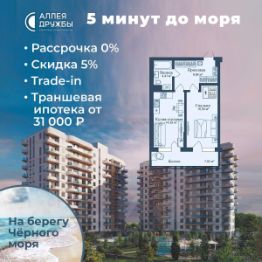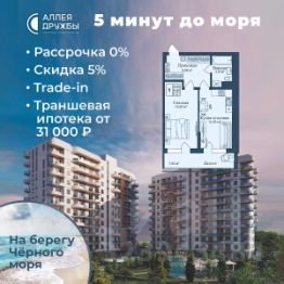 ЗВОНИТЕ ПРЯМО СЕЙЧАС, ЧТОБЫ ПОЛУЧИТЬ ВЫГОДУ ДО 650 000 руб!Цена указана со скидкой 5% при условии 100% оплаты либо ипотека.АКЦИИ:* Ипотека от 14,7%* ТРАНШЕВАЯ ИПОТЕКА - ПВ от 20%, платежи от 31000 в месяц* Рассрочка 0% до 2028г. ПВ от 20%* Скидка 5%* Бронь на 30 дней* 5 мин до моря пешком, планировки от 30 кв.м.* Высота потолков 3 м , предчистовая и чистовая отделка* Ипотека от СБЕРБАНКА* Доходность инвестиций от 30% годовых. * Сдача в аренду от управляющей компании (доверительное управление) позволяет получать доход от сдачи апартаментов без вашего участия* Безопасная сделка по ФЗ-214/эскроу-счёта''Аллея Дружбы'' — это комплекс апартаментов бизнес-класса в Евпатории, расположенный в 5 минутах прогулки от золотистых пляжей Чёрного моря. Два современных 12-этажных корпуса с панорамными видами на море объединены стильным стилобатом с центральным входом и бутиковыми retail-площадями, а закрытая территория и подземный паркинг обеспечивает приватность и безопасность.АРХИТЕКТУРА И КОНСТРУКТИВНЫЕ ОСОБЕННОСТИ:•12-этажное здание в авторском архитектурном стиле•Высота потолков (от 2,9 м до 3,1 м) •Эксклюзивное решение для первых этажей (высота потолков 3,4м)•Евро планировки с террасами и гардеробными•Панорамное ламинированное остекление •Индивидуальные келлеры•Видовые лоты на море•Высокоскоростные лифты по концепции 5* отеля•Предусмотрено резервное электроснабжение•По проекту предусмотрено место для кондиционера и практическое решение для маскировки коммуникацийЛОКАЦИЯ И ОКРУЖЕНИЕ:•До центра Евпатории - 7 минут на машине •Пляж - всего 5 минут пешком •Рядом с комплексом развитая инфраструктура (рестораны, магазины, кафе, медицинские учреждения, санатории) ГОСТЕПРИИМСТВО И БЕЗУПРЕЧНЫЕ СЕРВИСЫ: •Управляющая компания премиум-класса•Консъерж-сервис 24/7•Доставки продуктов и готовой еды•Зона ресепшн оформлена в стилистике комплекса•Лобби с атмосферным кафе и зонами для чтения•Премиальное решение для мест общего пользования•Интерактивная детская комната для самых маленьких •Пункты выдачи товаров от маркетплейсов•Гостевые парковочные места•Организовано место для хранения колясок ваших малышей•Ремонт на выбор ''Комфорт-формат'' и ''Гранд-формат''БЕЗОПАСНОСТЬ И ТЕХНОЛОГИИ СПОКОЙСТВИЯ:•Закрытая территория, двор без машин•Система контроля доступа (строго по электронным пропускам)•Подземный паркинг с тремя типами машиномест •Выделенные места для велосипедов•Камеры видеонаблюдения •Круглосуточный ресепшн •Телеметрия - автоматический сбор и передача данных с приборов учета апартамента минимизирует ошибки и мошенничество•Система умного апартамента с дистанционным управлением БЛАГОУСТРОЙСТВО ТЕРРИТОРИИ: •Ландшафтный дизайн по проекту (2 334 м² озеленения) •Прогулочные аллеи и зоны отдыха для расслабления и медитации•Коворкинг-зоны с высокоскоростным Wi-Fi для бизнес-переговоров•Детские и спортивные площадки •В апарт-комплексе вас ждут мини-маркет и магазин повседневных товаров