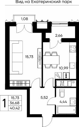 Продаётся 1-комнатная квартира в строящемся доме (Столица), срок сдачи: II-кв. 2029, общей площадью 40.42 кв.м., на 4 этаже. Новый клубный дом ''Столица'' от застройщика ''ИнтерСтрой'' расположен по адресу: Республика Крым, Симферополь, улица Набережная имени 60-летия СССР, 28А
