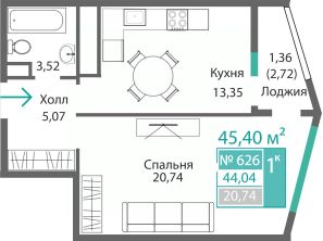 Продаётся 1-комнатная квартира в строящемся доме (Этап 4 (Секции А2, Ж2, Г4, В2, Г3)), срок сдачи: II-кв. 2028, общей площадью 44.04 кв.м., на 2 этаже. Новый жилой комплекс ''Подсолнух'' от застройщика ''Монолит'' расположен по адресу: Республика Крым, г. Симферополь, ул. Святителя Гурия