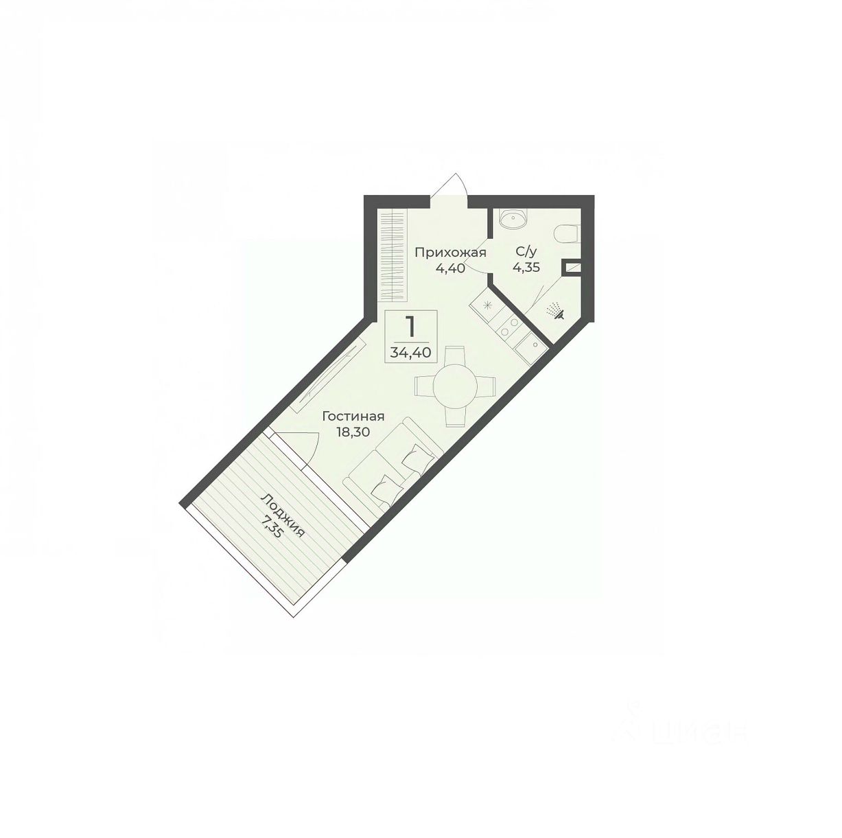 34 м² · Этаж 7 из 12