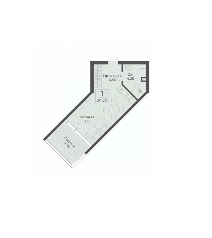 34 м² · Этаж 4 из 12