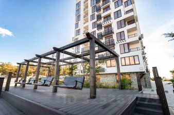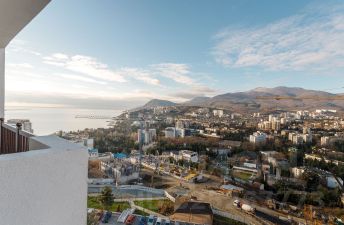 Продается квартира-студия в новом ЖК ''Лучистое'' в Алуште с видом на море. Квартира полностью готова к приему новых жильцов: от посуды до тапочек!Внутренняя площадь 26 кв.м., балкон 5 кв.м.Дом оснащен собственной котельной, в квартире тепло и уютно!Выполнен качественный ремонт, установлена вся необходимая мебель и бытовая техника, а также предметы интерьера.Сам комплекс оснащен полным спектром курортной инфраструктуры:открытый подогреваемый бассейн с джакузи, крытый бассейн, банный комплекс, оздоровительный центр, несколько зон барбекю, лаундж-зоны, детская и спортивная площадки, смотровые площадки, места для парковки авто.Спуск к морю -500 м.