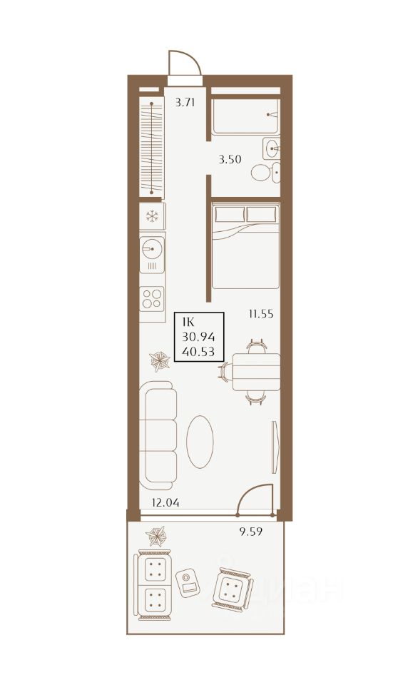 35 м² · Этаж 15 из 15
