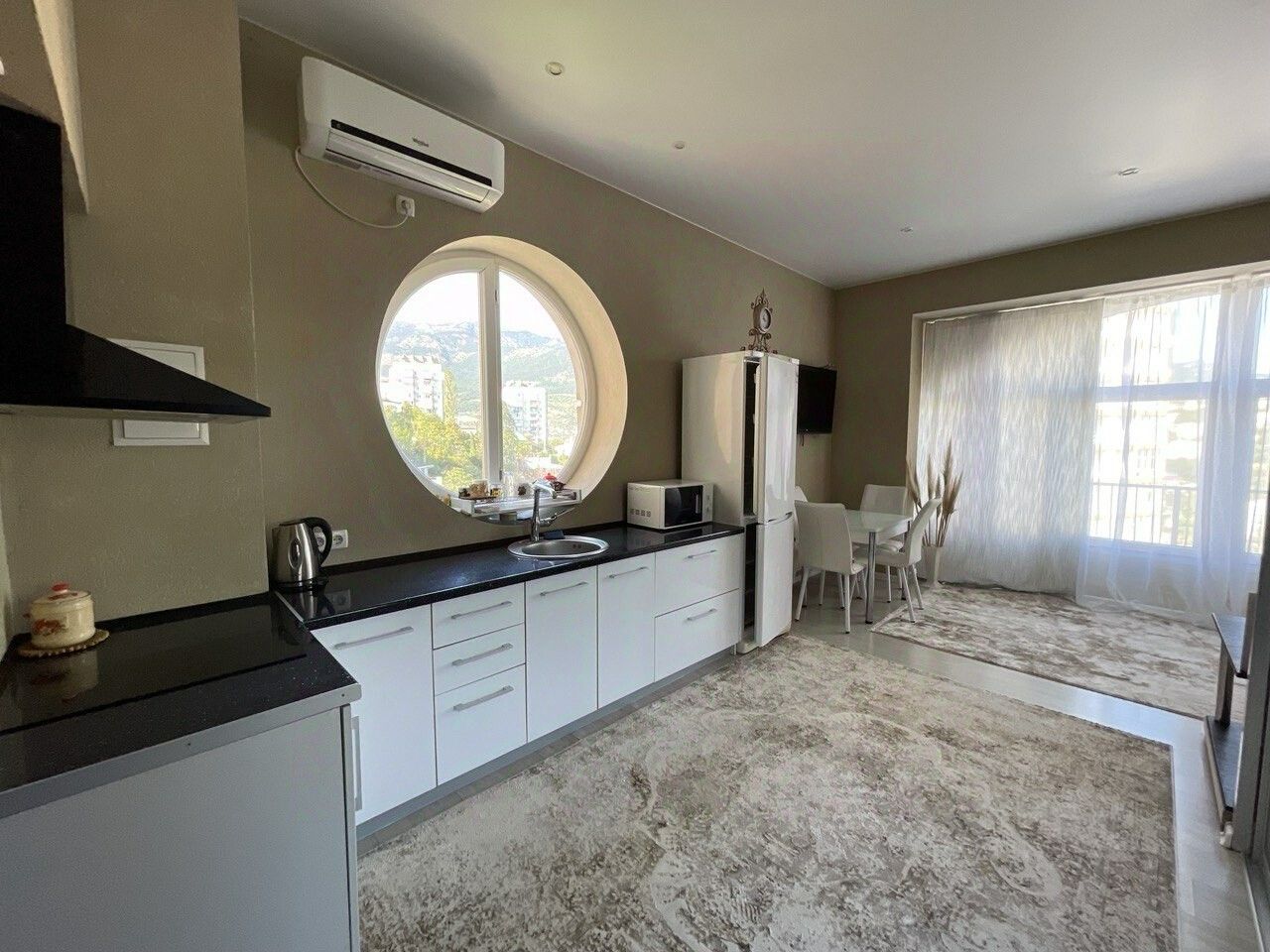 Продажа дизайнерской студии с видом на море и Ялту, на 8-м этаже 9-ти этажного жилого комплекса Панорама. Общая площадь 75 м². Выполнен качественный ремонт с высококачественной мебелью и техникой мировых производителей. В квартире застекленный балкон с панорамой на Ялту и море - солнечная сторона. Планировочное решение квартиры состоит из: -спальни, -гостиной, -кухонной зоны и столовой, -в прихожей два просторных шкафа-купе и зеркало в пол, -совмещенный санузел с душем. Отопление - двухконтурный газовый котел и теплые полы. Инфраструктура и расположение ЖК Панорама: Комплекс расположен в одном из самых зелёных и тихих районов Ялты, что создаёт комфортные условия для проживания. Всего в 500 метрах находится торговый центр ''Конфетти'', предлагающий широкий выбор магазинов и развлечений. Вблизи комплекса расположены детский сад, рынок свежих продуктов и супермаркет. Отличная транспортная доступность позволяет без труда добраться до любых районов города. В шаговой доступности, всего в 50 метрах, находятся две остановки общественного транспорта. Особенности комплекса: Территория жилого комплекса полностью ограждена и оснащена современными системами контроля доступа, включая шлагбаумы, видеонаблюдение и круглосуточную охрану. Пространство вокруг здания благоустроено зелёными насаждениями, уютными зонами отдыха и просторной детской площадкой. Управляющая компания обеспечивает регулярный уход за территорией, поддержание чистоты и обслуживание технических систем комплекса. Приобретение недвижимости в Крыму — отличное решение для сохранения и приумножения капитала. Такая квартира станет идеальным вариантом как для комфортного проживания, так и для сдачи в аренду, выступая в роли доходной недвижимости. Добавьте объявление в избранное, чтобы не потерять и следить за обновлением цены. Звоните! Мы всегда на связи.