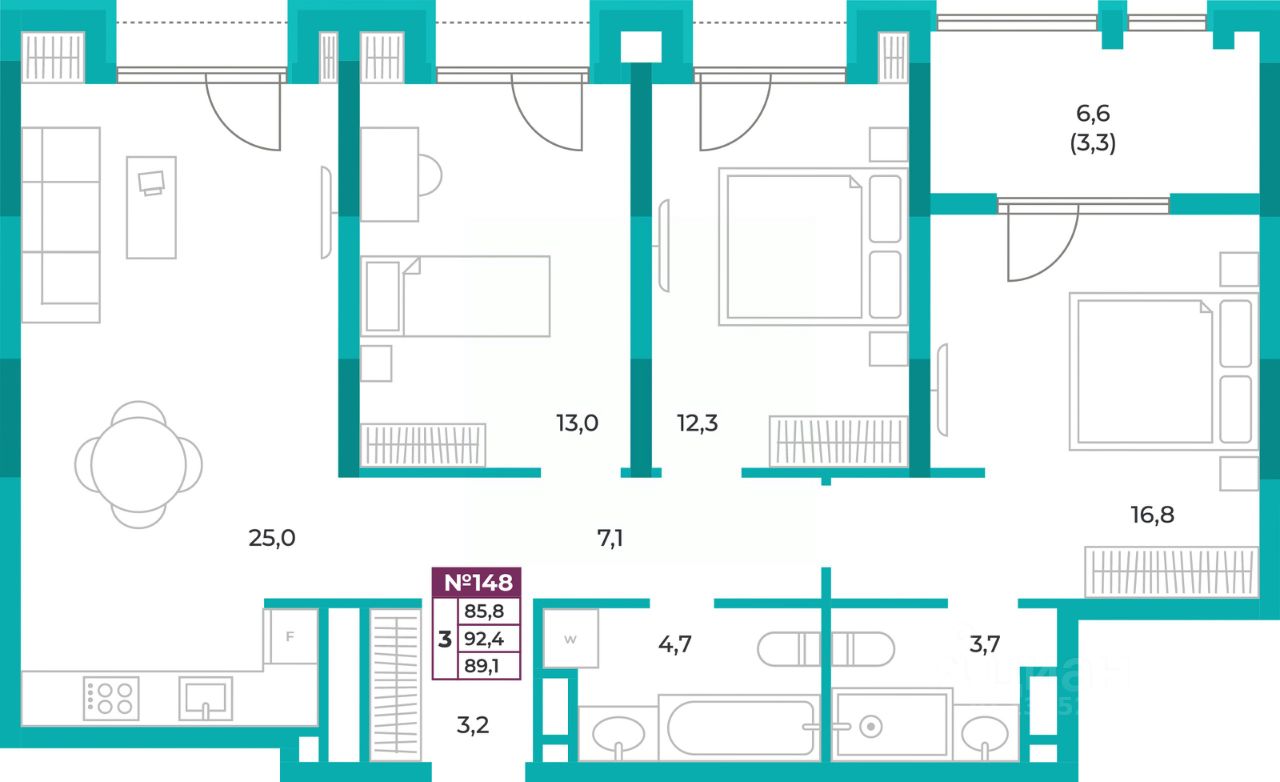 58 м² · Этаж 6 из 9