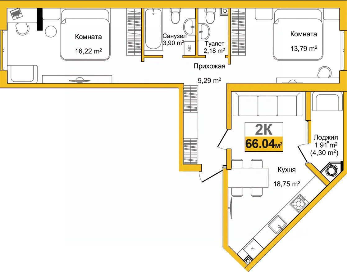 66 м² · Этаж 1 из 10
