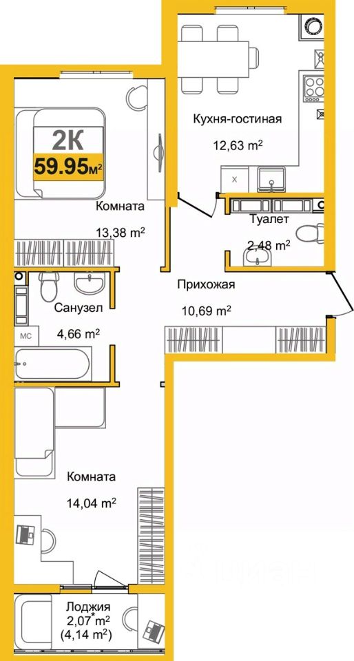 59 м² · Этаж 2 из 9