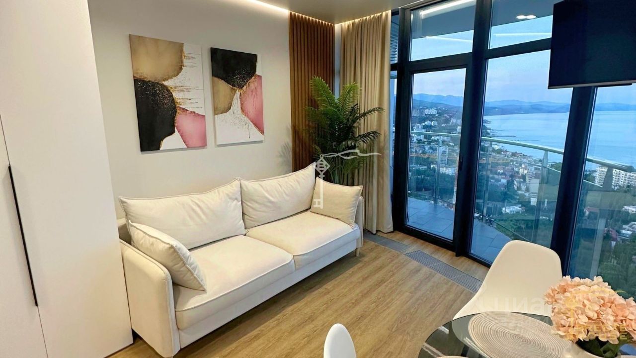 Продажа стильной студии 30.8 м² с просторной террасой с видом на море, расположенных в новом комплексе Алушты Крымская Резиденция, в 500 метрах от моря. Единое пространство спальни, гостиной и кухни с выходом на террасу, откуда открывается боковой вид на море. В апартаментах выполнен современный ремонт с максимально эффективным использованием полезного пространства. В интерьере преобладают натуральные материалы, изящные элементы декора и современное освещение. Апартаменты полностью укомплектованы бытовои техникои, качественной мебелью, аксессуарами и всем необходимым для постоянного проживания или сдачи в аренду. ''Крымская Резиденция'' — это комплекс, включающий 10 корпусов и ухоженную территорию с продуманной инфраструктурой. Апартаменты находятся на 8 этаже 16-этажной башни бизнес-класса с изысканным архитектурным решением. Здание имеет один подъезд, а на первом этаже располагаются коммерческие объекты, что делает его удобным для проживания и бизнеса. Инфраструктура: На территории комплекса предусмотрены бассейн, развлекательные зоны, фитнес-центр, паркинг и площадка для зоны BBQ. В будущем планируется строительство большого бассейна и расширенной инфраструктуры для комфортного отдыха. Весь район окружен чистым, целебным воздухом благодаря сочетанию морского бриза Черного моря и ароматов кипарисовой рощи. Расположение: В 10 минутах ходьбы расположен один из лучших пляжей Алушты — Профессорский уголок. К пляжу можно дойти по пологой дороге, по которой курсирует общественный транспорт. Поблизости находятся многочисленные кафе и рестораны. Удобная транспортная доступность: рядом находятся остановки, что позволяет легко добраться и до пляжей, до центра города и до автовокзала. Апартаменты подойдут как для собственного проживания, так и в качестве доходного бизнеса! Добавьте объявление в избранное, чтобы не потерять и следить за обновлением цены. Звоните! Мы всегда на связи.
