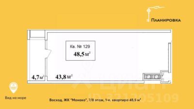 Предлагаем купить просторную однокомнатную квартиру под отделку в современном жилом комплексе бизнес-класса ''Монако'', в одном из самых экологически чистых районов Ялты — поселке Восход. Площадь квартиры - 48,5 м², включая балкон 4,7 м².Расположена на 7 этаже 8-этажного дома. Планировка: -кухня с обеденной зоной,-спальня,-прихожая,-совмещенный санузел,-просторный балкон.Состояние - под отделку. По документам статус - квартира. О жилом комплексе: ЖК ''Монако'' — современный комплекс бизнес-класса, выполненный в стиле средиземноморской архитектуры. Дом рассчитан на 143 квартиры, из окон открываются великолепные виды на Черное море и горы. Комплекс расположен между Никитским ботаническим садом и Массандровским парком, в окружении крымских сосен.Местоположение обеспечивает тишину, уединение и удобный доступ к морю, центру Ялты и всей инфраструктуре региона.Инфраструктура комплекса: -Крытый бассейн и сауна,-Зона BBQ,-Детские площадки,-Кладовые помещения,-Подземный паркинг,-Ресепшен,-Закрытая охраняемая территория.Расстояния: До оборудованных пляжей — менее 10 минут на автомобиле.До центра Ялты — 6,6 км, 13 минут на авто.Эта квартира станет отличным выбором как для собственного проживания, так и для сдачи в аренду.Добавьте объявление в избранное, чтобы следить за обновлением цены. Звоните!