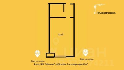 Продажа квартиры с видом на море в новом современном комплексе бизнес-класса Monaco, расположенном в поселке Восход, вблизи Ялты. Уникальное предложение по специальной цене! Общая площадь квартиры 41 м². Расположена на четвертом этаже 8-этажного дома. Планировочное решение: -кухня-столовая,-светлая спальня с видом на море,-прихожая.Состояние - под отделку. Свободная планировка. По документам статус - квартира. О жилом комплексе бизнес-класса Монако -Создан в лучших традициях средиземноморской архитектуры, призванной сохранять тонкий баланс между конструкцией здания и природой,-Дом на 143 квартиры с видом на Черное море и Ялтинское побережье, окруженный крымскими соснами и горами,-Расположен в экологически чистом районе города, между Никитским ботаническим садом и Массандровским парком,-Уникальная локация комплекса обеспечивает не только тишину и уединение, но и возможность быстро добраться до моря, достопримечательностей и городской инфраструктуры,Инфраструктура: -крытый бассейн и сауна,-reception,-подземный паркинг,-кладовые,-тренажерный зал,-детские площадки,-закрытая охраняемая территория,До моря и оборудованных пляжей менее 10 минут на автомобиле, До центра Ялты 6,6 км, 13 минут на авто. Отличный вариант выгодного вложения в собственное жилье или вариант под сдачу. Звоните нам, и мы ответим на все ваши вопросы! Мы на связи 24/7. Выбирая Breeze House, вы получаете полный комплекс профессиональных услуг по покупке премиальной недвижимости.