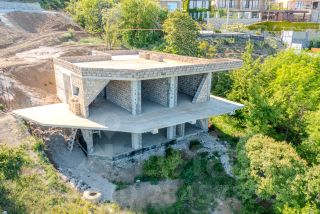 Villa Nero современная авторская вилла в КрымуЭта уникальная вилла находится всего в 10 минутах от Алушты, в поселке Верхняя Кутузовка. Дом идеально вписан в горный ландшафт, с участка открываются потрясающие виды на долину, гору Демерджи, виноградники и море.Площадь дома 250 м² (включая 40 м² террас), участок 7 соток. Возможна дополнительная организация пространства на эксплуатируемой кровле. Так же возможно увеличить площадь дома надстроив 3-й этаж. Вилла выполнена в современном стиле:•Верхний этаж: холл, гардеробная и 3 спальни с панорамными балконами. Хозяйская спальня с личным санузлом, общий санузел для других двух спален. Есть место для дополнительного санузла.•Нижний этаж: просторная кухня-гостиная, кабинет (или 4-я спальня), санузел и большая прачечная.Технические особенности:•Каркас железобетон, фундамент плита, стены ракушка.•Заведено электричество, газ на границе участка, вода доставка.Вилла продается на стадии строительства по текущей цене. Возможна продажа в готовом виде под внутреннюю отделку стоимость обсуждается индивидуально.