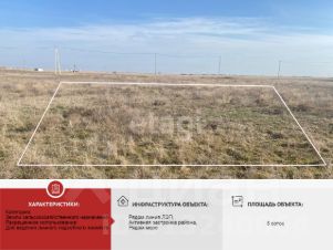Продается земельный участок площадью 5 соток в активно развивающемся массиве. Участок имеет прямоугольную форму и находится в хорошем месте. Участок находится в зоне ЛПХ. Объект недвижимости располагается в живописной местности, с ровным асфальтированным подъездом. Земельный участок уже размежован, что упрощает процесс оформления документов. Инфраструктура района включает в себя удобные транспортные связи, рядом проходит дорога, а до моря всего 4 км и до озера 2 км. Это создает отличные условия для отдыха и проживания.Для получения дополнительной информации и организации просмотра, пожалуйста, звоните или пишите. Документы готовы к сделке! МЫ ГАРАНТИРУЕМ ФИНАНСОВУЮ БЕЗОПАСНОСТЬ ДЛЯ НАШИХ КЛИЕНТОВ.Полное юридическое сопровождение сделки.Высокий шанс одобрения ипотеки.Звоните, с удовольствием ответим на ваши вопросы!Код пользователя: 185630Номер в базе: 10096665