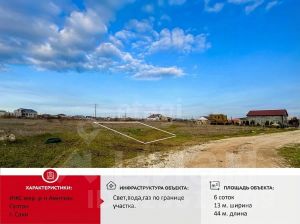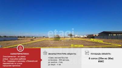 Продам участок в г. Саки!Участок расположен в новом массиве Каштан, в черте города. Ижс размером 6 соток, в центре улицы!Электричество проходит вдоль участка!Массив активно развивается, по улице начали строительство соседи.Все необходимое для комфортной жизни в пешей доступности: озеро, лес, магазин, до школы и садика 2 км от участка. В 2 км автовокзал и центральный рынок.До остановки 100 метров, в 100 метрах трасса Евпатория Симферополь. Много проходящих автобусов Дополнительно оплачивается комиссия покупателем.При звонке сообщите, пожалуйста, номер объекта 1010, чтобы мы могли предоставить вам интересующую информацию оперативно.