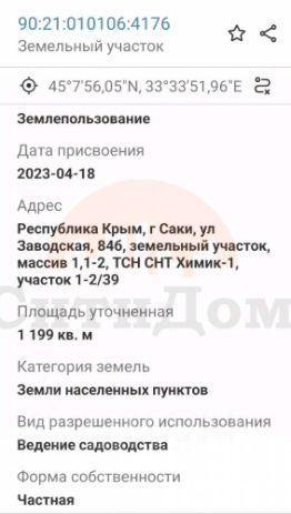 Продаётся участок в г. Саки на первой линии от трассы Симферополь-Евпатория! Участок площадью 6,3 сотки, вид использования - ИЖС. Размеры участка 27 на 24 метра. Местоположение выгодное как с коммерческой точки зрения, так и для личного пользования - максимально удобный выезд на дорогу, ведущую до моря, в сторону г. Евпатория и в сторону г. Симферополь. В 100 метрах от участка - жилой район города, здесь люди живут давно и постоянно. Рядом продуктовый магазин ЕдаВода, автомойка, СТО. Дорога асфальтированная, все коммуникации (газ, свет, вода, центральная канализация) и транспорт - городской автобус, железнодорожная станция. В пешей доступности магазины, школа, детский сад, озеро Тобе-Чокрак с фантастическими закатами. Документы готовы к продаже. Звоните! Наша комиссия 59000 р.+1% от стоимости объекта, но не менее 70000 р.МЫ ГАРАНТИРУЕМ ФИНАНСОВУЮ БЕЗОПАСНОСТЬ ДЛЯ НАШИХ КЛИЕНТОВ.Полное юридическое сопровождение сделки.Высокий шанс одобрения ипотеки.Звоните, с удовольствием ответим на ваши вопросы!Код пользователя: 113474Номер в базе: 3587860