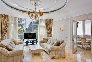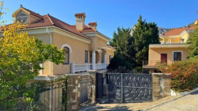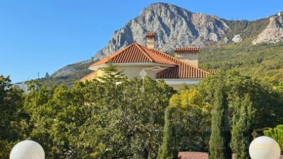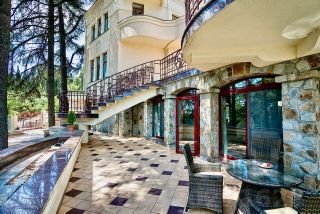Продажа особняка в Ялте. Особняк расположен в ближайшем пригороде Ялты, Сосняк. Вокруг дома раскинулась собственная парковая территория с высокохудожественным ландшафтным дизайном. Дом площадью 400 м кв. изящно вписан в окружающий ландшафт. В доме: террасы, гараж и дом для охраны 104 кв м, летняя кухня, сауна, винный погреб, тех. помещение для емкостей с водой, бассейн), расположенный на земельном участке 41 соток в пригороде г. Ялта у подножия гор.Дом расположен в районе элитной жилой застройки.Коммуникации заведены (в т.ч. эл-во 35 кВт).Бассейн с подогревом 126 м, мах глубина 2,5 м.В доме 3 этажа: 7 спален с санузлами и гардеробными, кухня-гостиная, гостиная с камином, террасы.Внутренняя отделка выполнена, преимущественно, в классическом стиле.В декоративном ландшафте участка использованы естественные скалистые места, которые имеются на участке, вековые сосны, множество редких пород деревьев, искусственный пруд с водопадом.Прекрасное, тихое, уединенное место в сосновом лесу, для жизни и отдыха.В 10 минутах езды от дома расположены: гостиница Ялта Интурист, Мор порт с тельферами и небольшой мариной для катеров, Никитский ботанический сад, СПА Никита Консоль, до Ялты 4 км.