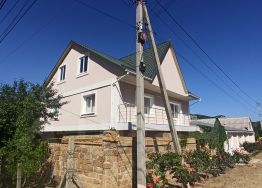 Новый жилой дом 200 кв.м. 2 этажа на 8 сот земли. Все коммуникации заведены - свет, центральное водоснабжение, газ. Свое газовое отопление. Просторные комнаты. Удобная планировка - все комнаты раздельные. Большая комфортабельная веранда 220 кв.м. для приема гостей и проведения праздничных мероприятий.Есть 3 гостевых номера. На первом этаже - кухня со встроенной техникой, санузел (туалет, душевая кабина, умывальник, стиральная машина) и жилая комната.На втором этаже - зал и две спальни. Из каждой комнаты есть выход на балкон. Дом расположен в уникальном по своей природе месте 100 м от подножия Чукур-Кая - лесистая горная вершина, входящая в состав большого горного массива Эчки-Даг , окружающего весь поселок Щебетовка.Расстояние до моря - 3 км, куда можно добраться по асфальтированной дороге до поселка Курортное, расположенного на берегу моря у подножья потухшего вулкана Кара-даг. Или по лесной дороге в Лисью бухту, являющуюся частью большого рекреационного парка Эчки-Даг.