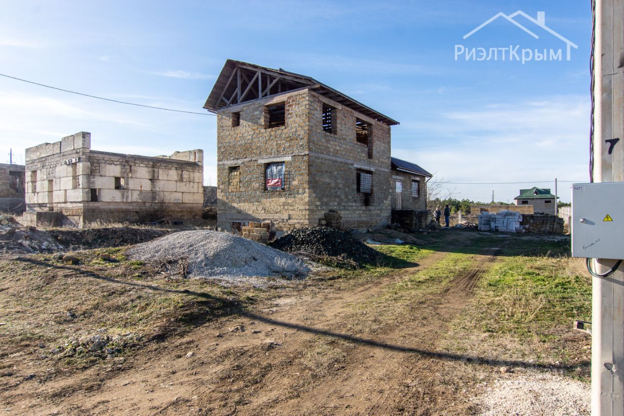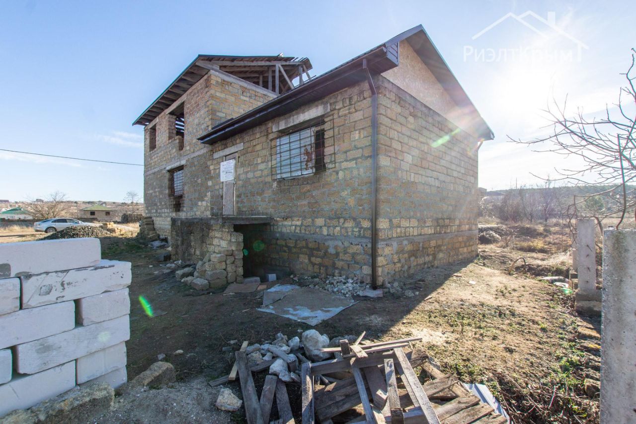 Продаётся введённый в эксплуатацию недостроенный дом из 3 этажей с учётом подвала из ракушечника в камень. Есть право собственности. Армопояс. Площадь дома 147.7м2 +, 41м2 пристройка с отдельным подвалом - котельная. Все перекрытия - ребристая ж/б плита. Участок ИЖС - 6 соток, проведено межевание. Сзади участка залиты столбы для забора. Электричество уже в доме, установлен счётчик, центральное водоснабжение и газификация - уже ведутся подготовительные работы, видно на фото. Расположен в 130 метрах от ЖК Бавария на ул. Балаклавской. Возможен обмен на 2-комнатную квартиру в Симферополе.
