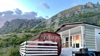 Арт. 105360965 Предлагаются к проживанию ДВА домика в горах! Без вложений- заезжай и наслаждайся живописными горными пейзажами, свежим воздухом и тишиной!На участке расположены два дома: 58 кв м с верандой- две спальни, гостиная-кухня, санузел, отопление электрическое и печное, кондиционер. 53,8 кв м с верандой и подиумом- одна спальня и санузел, отопление электрическое, кондиционер. Оба дома зарегистрированы. Так же на участке расположен функциональный хозблок 35 кв м со спальней, санузлом, кухней и внутренним двориком, 2 бани дровяные- 2 кв м кедровая и 5 кв м еловая. Фундамент- сваи, проваренные и укрепленные. Каркасная сборка. Брус 150*40 - каркас внешние стены, брус 50*40 - каркас внутренние перегородки, утепление - минеральная вата 150 мм. Окна, двери - ПВХ, двухкамерные. Крыша- гибкая черепица Технониколь, дополнительно закреплена металлическими стяжками.Коммуникации6 электричество 15 кВт, септик трёхкамерный с очисткой. Газ в перспективе, воду 10 кубов в месяц привозят. Село Лучистое расположено на Южном берегу Крыма, на южном склоне горы Демерджи, у истоков ручья (балки) Алагез (Алакоз), левого притока реки Демерджи, высота центра села над уровнем моря 490 м. Расстояние до Алушты около 10 километров (по шоссе) к северу, ближайшая железнодорожная станция — Симферополь-Пассажирский — примерно в 43 километрах. Транспортное сообщение осуществляется по региональной автодороге, соединяющей трассу Симферополь — Ялта с шоссе Алушта — Судак. К северо-западу от села находится известный памятник природы — Долина Привидений. В селе: школа, детский сад, ФАП, магазины, аптека, рынок. В верхней части села у подножия г. Демерджи проходит заповедная зона и популярные туристические маршруты. Домики находятся в 100 м от заповедной зоны. До моря 10,5 км, до Алушты 10 км, до центра села, школы и детского сада 2 км. Расстояние до Ялты - 40 км. Водопад Джур Джур- 12 км. Домики находятся в 100 м от заповедной зоны- места съемок Кавказской пленницы, Сердца трех, Спортлото -82.Свободная продажа! 1 взрослый собственник!