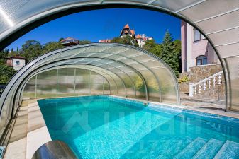 Продажа виллы в Ялте. Шикарный частный особняк построенный в виде старинного графского замка в элитном поселке среди реликтового соснового леса. Дом в элитном поселке Ялты, сосняк, подкупает своим уютом и респектабельностью. Дом пригоден для круглогодичного проживания и ожидает нового, представительного хозяина. Придомовая территория площадью 22 соток, грамотно и со вкусом спланирована. По всему периметру участка идут монолитные бутовые стены. На придомовой территории детская площадка, винный погреб, технические помещения, зоны отдыха и релакса, открытая парковка на 8 авто, гараж на два авто, большой плавательный бассейн водо вместимостью 82 куба, бассейн с постепенным уклоном разделен на детскую зону и плавательную зону для взрослых, установлена дополнительная чаша гидро ванной, над бассейном просторная лаундж зона с местами для отдыха, летней кухней и баром. Отдельно стоящий гостевой дом на первом этаже сауна с парилкой, просторный предбанник с массажными креслами действующим камином с медной вытяжкой. На втором этаже над сауной гостевые апартаменты 60 кв.м. Весь двор утопает в зелени, большая часть территории находится в тени под сенью исполинских крымских сосен, которых на участке более двух десятков, по мимо этого на участке в большом количестве произрастают туя, можжевельник, пальмы-форчуна, зеленые лужайки. Автоматизированная система полива. Особняк в Ялте введен в эксплуатацию в 2004 году, дом спроектирован и построен по индивидуальному архитектурному проекту. Фундамент железо бетонная плита, каркас и перекрытия железо бетонный монолит, полости заполнены природным камнем ракушкой в полный камень, облицовка дома выполнена редким и красивым Гаспринским камнем серого цвета с алыми прожилками. С северной стороны дома отдельный вход в комнату для персонала. Комната персонала состоит из кухни-студии с евро ремонтом и просторного сан узла. Комната полностью автономна. На первом этаже виллы в Ялте прихожая, отопительные котлы, кабинет, кухня-гостиная сан узел. На втором этаже виллы в Ялте две хозяйские спальни с выходами на балкон. Балконы ориентированы на север и юг. На балконах установлена садовая мебель, с балконов открывается вид на море и хвойный лес. Так же на втором этаже расположен сан узел и душ, изысканная просторная ванная комната, большой встроенный шкаф и детская комната. Третий этаж комната отдыха-Бильярдная, спорт зал. Лестница между этажами выполнена из натурального массива дерева. Дом изумительный не имеет аналогов в Крыму, идеально подходит для частной резиденции для круглогодичного проживания или для сезонного отдыха в сосновом реликтовом лесу в окружении тишины, респектабельности и комфорта. Достаточно увидеть этот дом и в него невозможно не влюбится с первого взгляда.