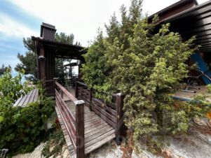Уютное шале из натурального дерева и природного камня с панорамными видами на море и побережье, в окружении крымских сосен и можжевельников. Двухэтажный дом из камня на первом этаже и профилированного Закарпатского бруса на втором этаже общей площадью 193 кв.м. Планировка дома включает в себя: На первом этаже просторная гостиная с панорамными окнами от пола до потолка наполняет пространство светом и открывает живописные виды, также на первом этаже расположены 2 спальни, сан узел, котельная. На втором этаже: на этаж имеются два изолированных входа с возможностью использования данный этаж как два автономных однокомнатных номера для проживания гостей, с персональными сан узлами и мини кухнями, из спален второго этажа выход на балкон с панорамными видами на море и побережье. Под домом расположен погреб из тесанного бута. Земельный участок 10 соток, на участке ландшафтное озеленение, фруктовый сад, смотровая площадка, теневые места для отдыха, барбекю, летняя кухня, парковка на несколько авто. Имеется место для строительства бассейна и бани. Дом расположен в месте с уникальным микроклиматом в окружении хвойников, дом на господствующей возвышенности с панорамными видами на море и побережье. К дому удобный асфальтированный подъезд и комфортная развязка с выездом к Мрии резорт, в Ялту, Алупку, Симеиз.