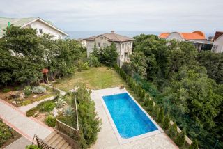 Стильная и современная вилла в окружении хвойных деревьев и можжевеловой рощи.Вилла расположена на господствующей возвышенности, панорамные виды на море и побережье.Просторный земельный участок площадью 29 соток.Основная вилла 335 кв.м., планировка виллы включает в себя: 4 мастер спальни с персональными гардеробными и сан узлами, кухня-столовая, гостиная, эксплуатируемая кровля с обзорными видами на море, побережье, горы, заповедник.Дополнительно на земельном участке выстроены: дом для гостей площадью 80 кв.м. с гаражом и двумя студиями для автономного проживания гостей или персонала, дровяная сауна с комнатой отдыха и сан узлом.На земельном участке 9 соток, расположены все основные постройки, выполнено высококлассное ландшафтное озеленение, панорамная беседка с местами для отдыха и доменным мангалом, плавательный бассейн с зоной загара. Остальная часть участка 20 соток собственный лес расположенный с южной части домовладения что гарантирует неперекрываемость в будущем видовых характеристик и приватность.Все городские коммуникации, асфальтированный тупиковый подъезд, респектабельное соседство.Вилла полностью готова к проживанию, звоните сейчас договоримся о просмотре.