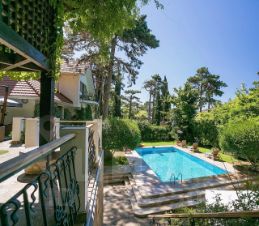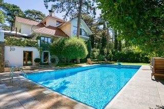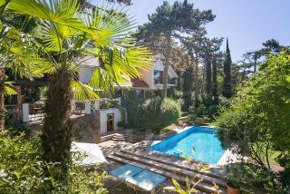 Продажа особняка в Ялте. Особняк расположен в ближайшем пригороде Ялты, Сосняк. Вокруг дома раскинулась собственная парковая территория с высокохудожественным ландшафтным дизайном. Дом площадью 400 м кв. изящно вписан в окружающий ландшафт. В доме: террасы, гараж и дом для охраны 104 кв м, летняя кухня, сауна, винный погреб, тех. помещение для емкостей с водой, бассейн), расположенный на земельном участке 41 соток в пригороде г. Ялта у подножия гор.Дом расположен в районе элитной жилой застройки.Коммуникации заведены (в т.ч. эл-во 35 кВт).Бассейн с подогревом 126 м, мах глубина 2,5 м.В доме 3 этажа: 7 спален с санузлами и гардеробными, кухня-гостиная, гостиная с камином, террасы.Внутренняя отделка выполнена, преимущественно, в классическом стиле.В декоративном ландшафте участка использованы естественные скалистые места, которые имеются на участке, вековые сосны, множество редких пород деревьев, искусственный пруд с водопадом.Прекрасное, тихое, уединенное место в сосновом лесу, для жизни и отдыха.В 10 минутах езды от дома расположены: гостиница Ялта Интурист, Мор порт с тельферами и небольшой мариной для катеров, Никитский ботанический сад, СПА Никита Консоль, до Ялты 4 км.