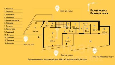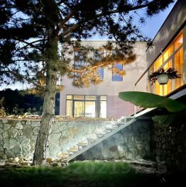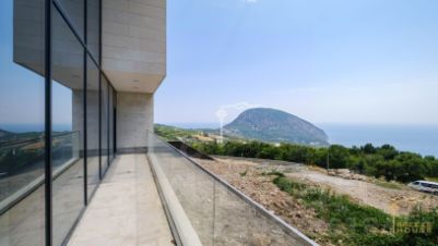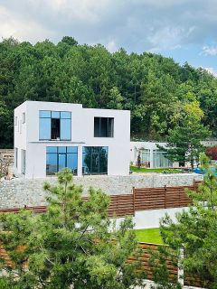 Продам эксклюзивную виллу новой постройки в стиле хай-тек на территории охраняемого коттеджного поселка закрытого типа, вилла расположена на господствующей возвышенности в субтропическом курортном поселке Краснокаменка над лагерем Артек в Гурзуфе.Двухэтажная вилла площадью 450 кв.м. на земельном участке 20 соток.Планировка виллы включает в себя:Первый этаж: гостиная со вторым светом и панорамным видом на море высота потолков в гостиной более 4-х метров, кухня-столовая (оборудована профессиональной кухонной техникой техникой фирмы Liebherr) с выходом к бассейну и зоне барбекю, гостевая спальня с гардеробной и персональной ванной комнатой. Также на первом этаже расположена сауна с комнатой отдыха и душевой из сауны отдельный выход к бассейну и зоне барбекю.Второй этаж: холл, две спальни с панорамным застеклением от пола до потолка и выходом на балконы с которых открывается панорамный вид на море, детский лагерь Артек и прибрежные Гурзуфские скалы, в каждой спальне гардеробная и персональная ванная комната.Земельный участок площадью 20 соток (ландшафтное озеленение включено в стоимость дома и ведется на данный момент), на участке большой плавательный бассейн с зоной загара, под бассейном тех помещения и помещения персонала, беседка с зоной барбекю, котельная, чайный домик (можно преобразовать в спорт зал) с местами для отдыха и видом на море, гараж для авто, над гаражом эксплуатируемая кровля с сумасшедшими видами на море, горы, побережье и Ялтинский горно-лесной заповедник.Подключены все городские коммуникации, дом и земля в собственности-статус ИЖС, дом полностью завершен, отделочные материалы премиум класса, панорамное застекление с раздвижной системой из алюминиевого энергосберегающего профиля с напылением солар, фасад облицован природным Альминским камнем белого цвета.К дому отличный асфальтированный подъезд, несмотря на то что дом в коттеджном поселке будет всего один смежник-сосед. Вокруг живописные места с озерами, рыбалкой и заповедник, до моря 10-15 минут на авто. Место очень тихое, нет толп туристов и невероятно плотной прибрежной застройки.На данный момент предложение не имеет аналогов на Южном Берегу Крыма, цена ограничена по времени. Звоните уже сейчас и договоримся о просмотре этого эксклюзивного домовладения.