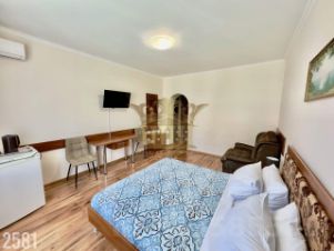 Объект 2581. Продам готовый, действующий бизнес, гостевой дом на берегу Черного моря. Республика Крым, г. Алушта, с. Рыбачье. Площадь Гостевого дома 856 м2, располагается на 5 сотках земли с назначением ИЖС.фундамент ленточный, глубина более 2,5 метров, стены из монолита и ракушки, крыша четырехскатная, металлочерепица, утеплена стекловолокном.На участке своя скважина, гелиоустановка, канализация центральная, электричество.В гостевом доме 27 номеров разного уровня с качественным ремонтом и мебелью. двухместных 8 номеров, улучшенных (2-4 чел) -3 номера, 2+1 - 16 номеров. В номерах холодильник, кондиционер, электрочайник, фен, мебель в комнате и на балконе. Есть оборудованная кухня, обеденная зона, игровая, места для проведения досуга. Видеонаблюдение. Оборудованная прачечная. До моря 10 минут пешком. До набережной-15 мин. Развитая инфраструктура с магазинами, ресторанами и кафе.Есть свой сайт и дается реклама на различные платформы, множество постоянных клиентов, отдыхающих каждый год.