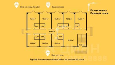 Продажа нового гостиничного комплекса средиземноморской архитектуры с панорамными видами на море, скалы Адалары и гору Медведь, расположенного в живописном уголке Южного берега Крыма в поселке Гурзуф. Совершенно новое здание, выполненное в средиземноморском стиле, которое удачно вписывается в окружающий ландшафт и местную архитектуру. Общая площадь здания 704 м², площадь участка 5,5 сотки. Эксплуатируемая кровля с видом на море 247 м². Архитектурная концепция предусматривала возможность размещения до девяти номеров на каждом этаже. Всего номерной фонд составит 27 апартаментов. Однако владельцы приняли решение оставить пространство в свободной планировке, без внутренних перегородок, чтобы будущий владелец мог реализовать свои идеи и создать уникальный проект отеля. На втором и третьем этажах расположены просторные террасы, ориентированные как на море, так и на горы. Благодаря этому, каждый номер в вашем отеле будет обладать потрясающим видом, что значительно повысит его привлекательность для гостей.На эксплуатируемой крыше можно обустроить уютные зоны отдыха с захватывающими панорамными видами. Кафе и небольшой бассейн с солярием станут прекрасным дополнением для комфортного отдыха ваших гостей.Технология строительства: -монолитного железобетонного каркаса с заполнением стен ракушечником,-высота потолков составляет 3,3 метра, что придает дополнительный простор.,-крыша из натуральной красной черепицы.Ровный участок ИЖС площадью 5,5 соток предоставляет возможность организовать зону для бассейна и парковки. Подведены все центральные коммуникации, газ проходит по границе участка.К дому ведет удобная асфальтированная дорога.Премиальное расположение: В непосредственной близости находятся закрытый коттеджный поселок премиум-класса ''Виллы Галата''. Кроме того, в округе располагаются действующие гостиницы аналогичного формата, что подчеркивает привлекательность района для инвестиций и отдыха.До набережной и пляжей - 3 минуты на авто или 10 минут пешком. До Ялты 20 минут на машине. Это уникальная возможность вложить средства в объект с высоким потенциалом доходности. Учитывая растущий интерес к курортам Крыма, такой объект будет пользоваться постоянным спросом среди туристов. Добавьте объявление в избранное, чтобы не потерять и следить за обновлением цены. Звоните! Мы всегда на связи.