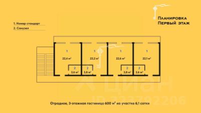 Продажа мини-отеля на десять номеров площадью 600 м² на благоустроенном участке 6,1 соток в живописном поселке Отрадное в 500 метрах от моря. Уютный дворик, утопающий в зелени и цветах, на котором располагаются: -3-этажное основное здание 600 м²,-кафе-столовая на цокольном этаже,-гостевой дом с сауной,-беседка с зоной BBQ и тандыром,-парковка на шесть автомобилей.Трехэтажное здание вмещает в себя: На цокольном этаже расположена кухня , оборудованная всей необходимой встроенной техникой, и просторная уютная обеденная зона. Здесь с комфортом могут разместиться все ваши гости.Восемь номеров стандарт на втором и третьем этаже: Уютные и просторные номера с балконом, обставленные мебелью из натурального дерева.Два номера люкс на мансардном этаже: Просторные номера с отдельной спальней и балконом с видом на море, обставленные мебелью из натурального дерева.В номерах: большая кровать, раскладной диван, стол, кондиционер, телевизор, холодильник и чайник.Вход в номера осуществляется через улицу по внешней лестнице. Интерьеры продуманы до мелочей и оформлены с использованием натуральных, экологически чистых материалов. Обилие остекления и просторные террасы, открывающиеся виды на море и внутренний двор отеля, создают особую атмосферу уюта и спокойствия.Техническое оснащение: -Все центральные коммуникации, в том числе и газ,-TV и Wi-Fi.Отель функционирует круглогодично, загрузка достигает 95-100% в летний сезон. Стоимость номеров варьируется от 6 500 до 10 000 ?/сутки с мая по октябрь и 4 000 до 7 000 ?/сутки в зимний период. Востребована сдача зимой помесячно.Отель расположен в живописном месте с однородным соседством гостиниц. -До центра Ялты 15 минут на автомобиле.Пляж в Отрадном — галечный, протяженностью 500 метров, находится всего в 5 минутах ходьбы от отеля. Вода чистая, с комфортным плавным заходом. На пляже есть все удобства: раздевалки, аренда лежаков и зонтиков, детская анимация, водные аттракционы и оздоровительный центр. Набережная вымощена плиткой, оборудована скамейками, летними кафе и магазинами. Рядом расположен тенистый парк с уютными аллеями и детской площадкой с мягким покрытием. В пешей доступности от отеля находится курортный комплекс ''Ripario'' с разнообразной инфраструктурой для отдыха и развлечений. Здесь можно сыграть в бильярд, провести время на площадках для мини-футбола, волейбола и тенниса, а также заняться спортом в фитнес-клубе. В баре вам предложат освежающие коктейли, а в ресторане — фирменные блюда от шеф-повараРядом с отелями расположены популярные достопримечательности: Никитский ботанический сад, набережная им. Ленина в Ялте, Массандровский дворец, Ливадийский дворец, Парк Айвазовского в Партените, Канатная дорога Мисхор — Ай-Петри, замок Ласточкино гнездо, Воронцовский дворец и Форосский парк.Добавьте объявление в избранное, чтобы не потерять и следить за обновлением цены. Звоните! Мы всегда на связи.