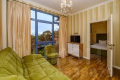 Продаётся премиальный Бутик-отель. 20 номеров с дизайнерским ремонтом. Участок 24,9 соток. Площадь 1 480 кв. м. Бутик-отель расположен в ближайшем пригороде Ялты в одном из самых зелёных, живописных и незастроенных районов посёлка городского типа ''Восход''. Отель окружают многолетние Крымские сосны, кедры и дубы. В 600 метрах по прямой от участка расположен один из старейших ботанических садов мира, основанный в 1811 году. Напротив, виллы через дорогу расположена Вилла Софии Ротару, которую она продала в 2019 году. Бутик-отель расположен в 7 километрах, не доезжая до Ялты со стороны аэропорта, что позволяет всегда без пробок добраться до неё из аэропорта или ЖД вокзала. До моря по прямой 1400 метров.Отель расположен на 14,9 сотках земли. В стоимость продажи виллы включен земельный участок, прилегающий к вилле с дополнительной площадью 10 соток.В данный момент средняя стоимость номера в отеле составляет 15 000 рублей. Отель раскручен, процент заселения отеля 35-40% в среднем по году. Годовая выручка составляет 40 миллионов рублей в год. Строение Вилла 1 это вилла, состоящая из 7 номеров. Вилла состоит из трёх этажей. Площадь виллы составляет 760 кв. м., из которых 160 метров это терраса на третьем этаже. Фасад виллы облицован натуральным Иранским травертином. Вся входная группа, лестницы и перила выложены гранитом. Напольное покрытие первого этажа виллы состоит из узоров и панно нескольких видов мрамора. Столовая зона и зона кухни укомплектованы мебелью, роскошными стульями и большими столовыми столами. Ступеньки лестницы между этажами облицованы мрамором и подсвечены декоративной подсветкой. Кованные перила декоративной ручной ковки исполнены в стиле виноградной лозы. Вилла состоит из просторного холла, переходящего из зоны кухни к бассейну через столовую зону. В вилле семь спален, шесть гардеробных комнат, семь санузлов, два из которых с окнами и огромной террасы в 160 кв. м. на крыше. Виды из виллы на море, густой хвойный лес и скалистые горы. Место очень уединённое, тихое и приватное. Ремонт виллы выполнен на 100% из самых дорогих отделочных материалов, напольный ламинат в спальнях толщиной 1,5 см. Люстры, подвешенные в вилле привезены из Ирана. Вилла достроена и введена в эксплуатацию.Строение Вилла 2 это гостевой дом из 13 номеров, общей площадью 720 кв. м. из которых 140 метров это открытая терраса на пятом этаже здания. Гостевой дом, состоящий из четырёх этажей и террасы на крыше. На крыше помимо террасы расположен просторный зал, предусмотренный под частный спортзал и бильярдную комнату. Четыре этажа гостевого дома представляют из себя четыре двухкомнатные квартиры. Каждый этаж здания это одна квартира с отдельным входом. В отеле установлена газовая котельная, отапливающая оба корпуса отеля. Во дворе круглогодичный бассейн с подогревом. Свой собственный банный комплекс, состоящий из бани на 10 человек, лаунж-зоны и чана с подогреваемой водой на улице. Городская канализация. Данный отель является самой выгодной покупкой оте